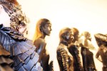 The models wore intricately embellished face jewellery, which also was seen worn as head pieces, complimenting the fantastical theme of this costume collection. Models walked with black paint on their face and bodies, further enhancing the dark, yet beautiful, theme showcased.