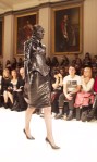 Texture and shape is a key indicator for this collection. Exaggerated shoulders, peplums, necklines and silhouettes were seen and the venue lighting emphasised the complex use of black tones used for matt and shiny fabrics and leathers.